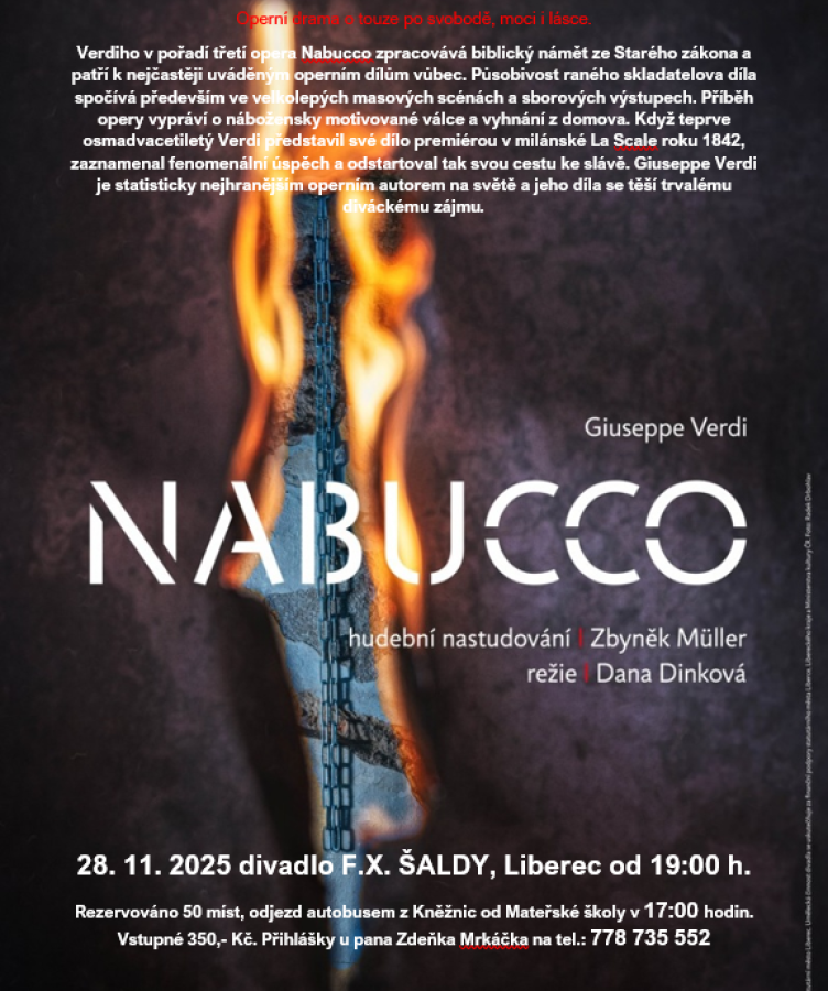 Obecní úřad pořádá zájezd do divadla F. X. Šaldy v Liberci na operu Nabucco.